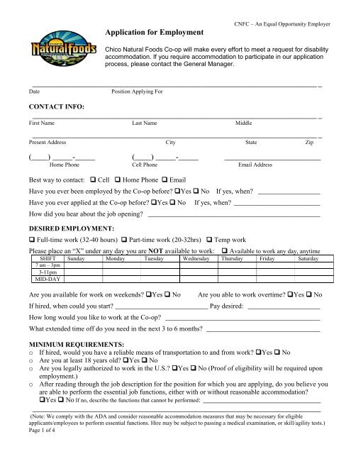 Application For Employment Good Food Jobs